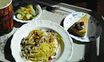 LAWSON自信作のプレミアムロールケーキとパスタ。